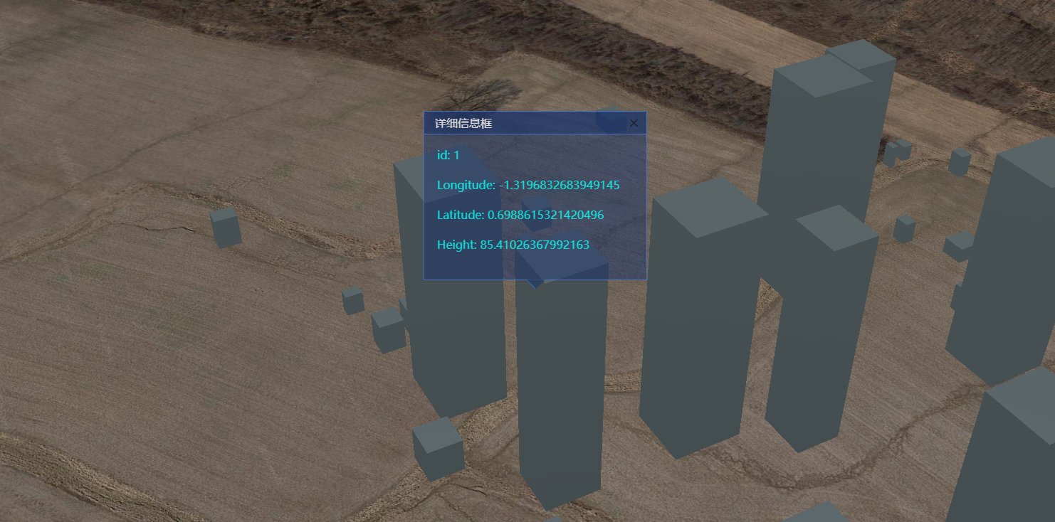 在习惯了二维的Popup框之后,也想在三维里面有个。但是Cesium并没有封装过Popup框,有的只是一个悬浮固定位置的信息框,就是这样的: