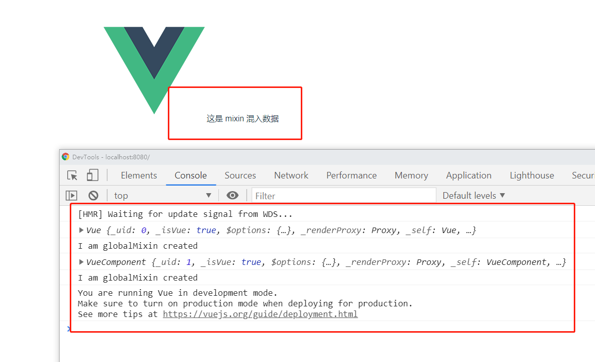 在上面的Vue插件开发中,install里面有个vue.mixin方法。这个是Vue提供的一个全局Api , 通过混入,可以把方法和变量混入Vue的示例中,具体看文档 这里使用