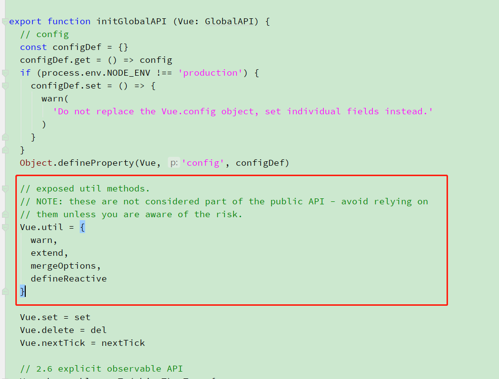 vue.util.defineReactive(this, 'current', this._router.history);。这行代码主要是让current属性为响应式。Vue.util是没有在文档写出的。源码中可以看到定义