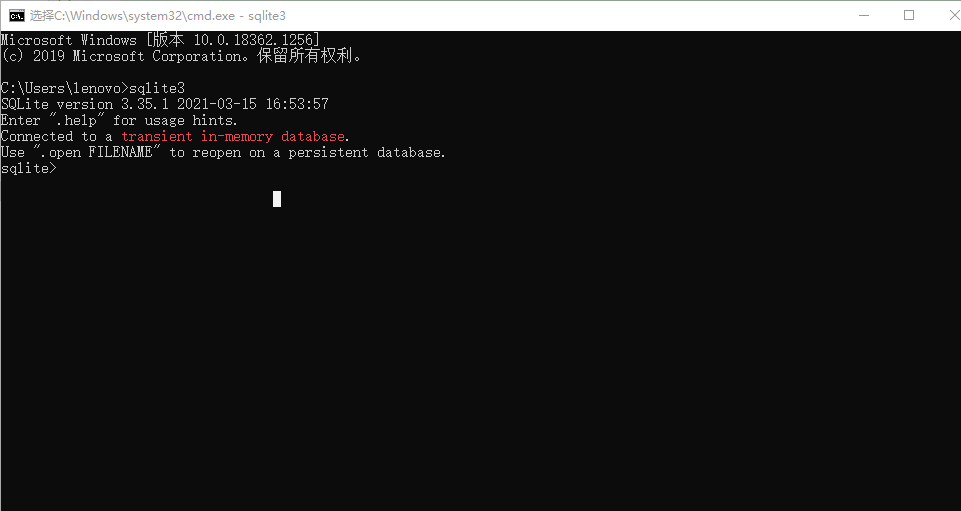 最后检查一下是否安装成功 在cmd 命令行中输入 sqlit3 回车。如果安装成功出现会入下图所示: