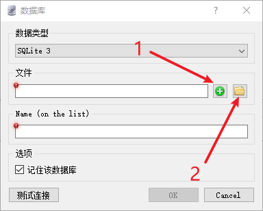 1 是新建,2是打开。 新建的时候,选好文件夹,然后输入数据库的名称就行了。因为我之前建立了,就直接选择打开。