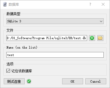 点击测试连接,出现绿色对号。说明连接正常。然后点击 OK。 - 建表